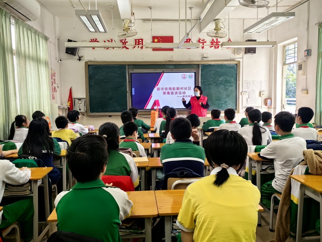 日前,广州市白云区新市街关工委、禁毒办、南航新村社区党委在汇侨第一小学小坪校区举办了禁毒教育“进校园”宣讲活动,进一步深化禁毒教育工作方针,提高学生对毒品的防范意识,有效提升学生的自我保护能力,营造平安和谐的校园环境。