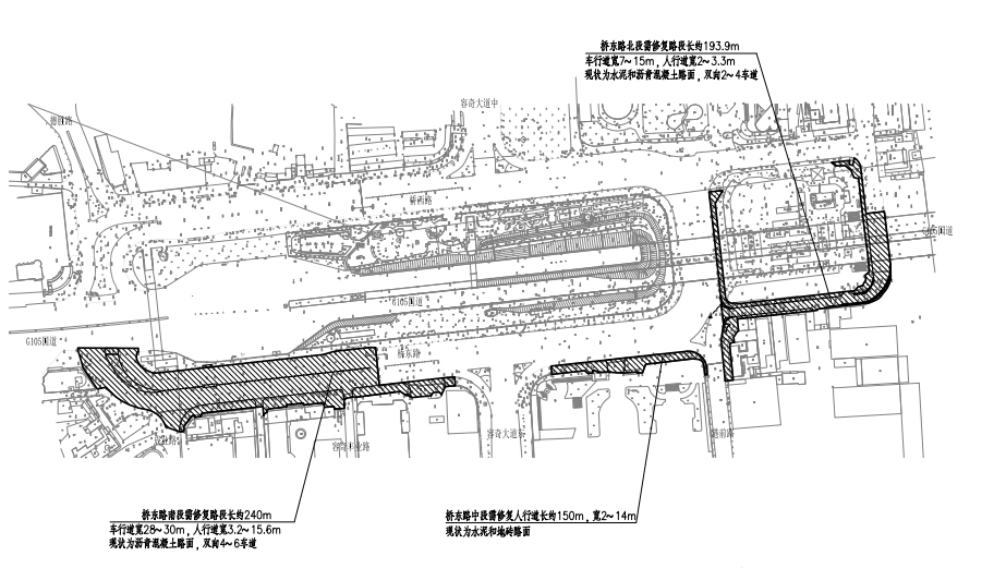 备注:先封闭桥东路,进行冼刨施工,期间桥西路交通保持通畅。桥东路施工完毕再封闭桥西路,期间保持桥东路交通通畅。