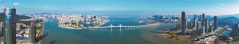 澳门半岛、横琴、珠海的景色。图/新华社发