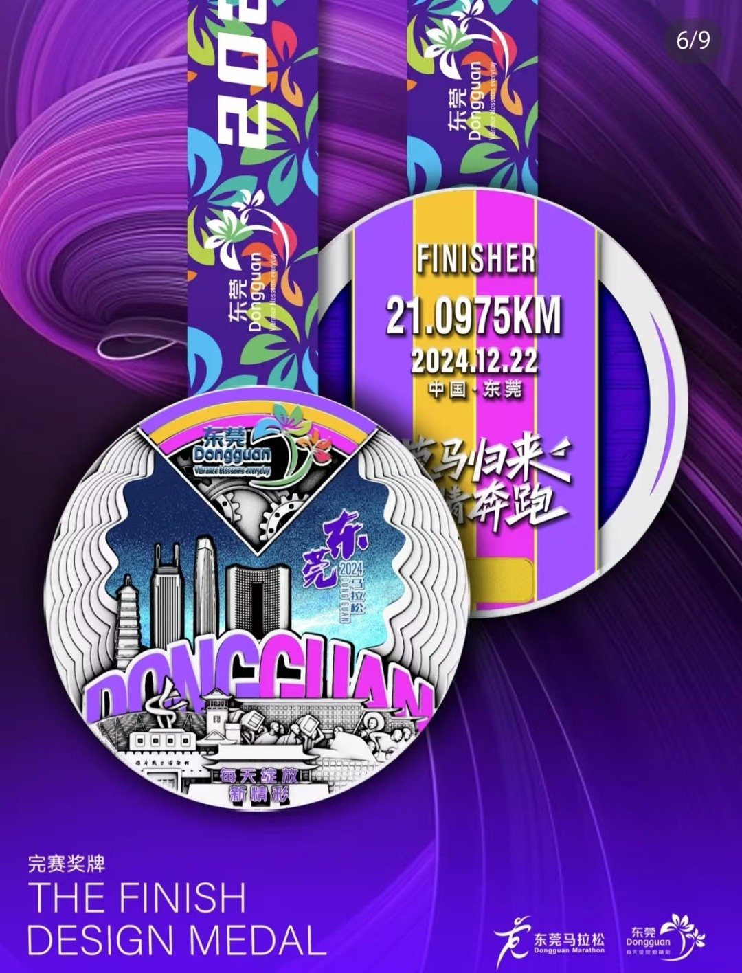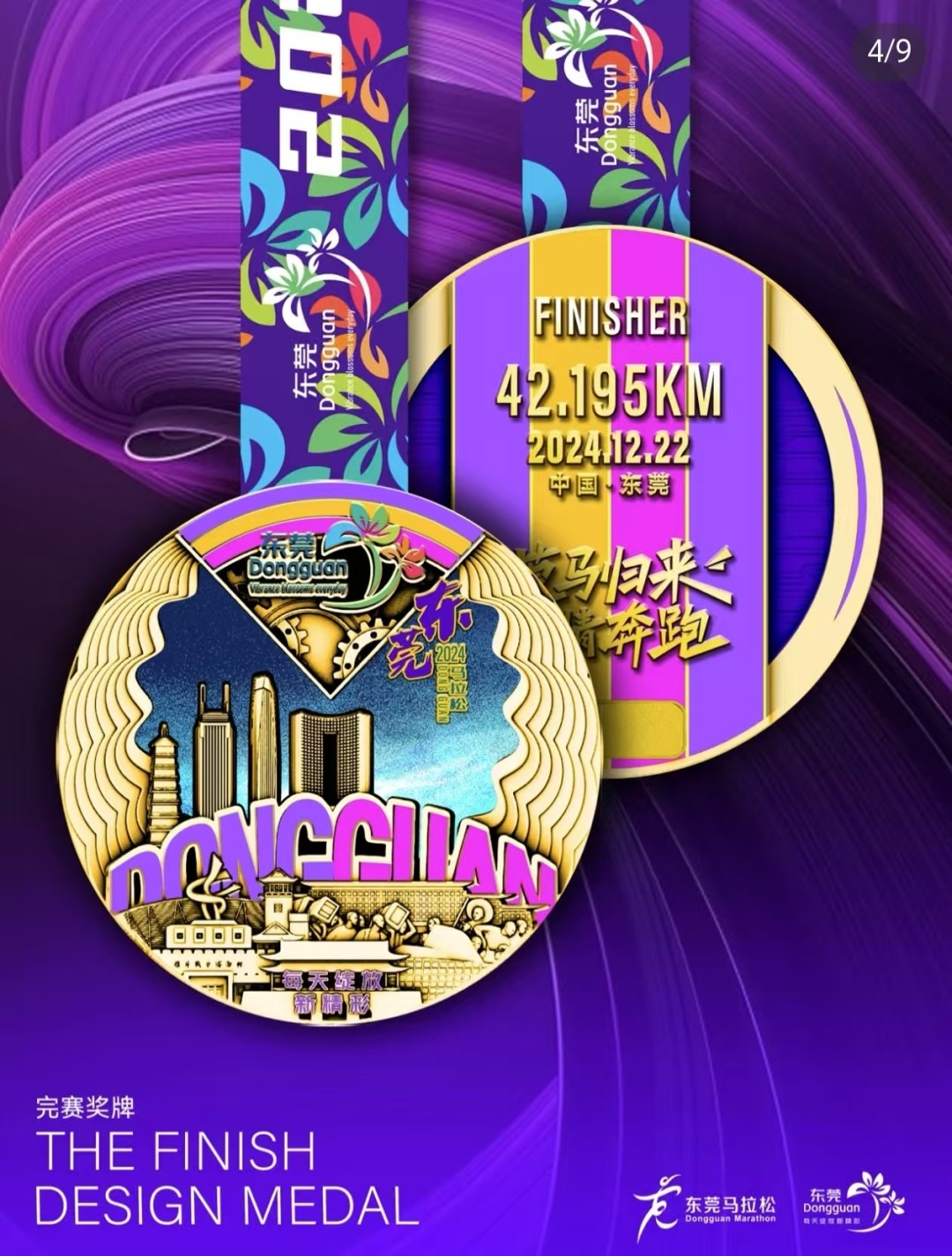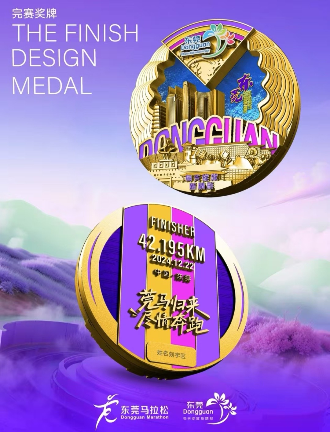 而本次的完赛奖牌设计感满满,采用独特的中间镂空流沙设计,镶嵌东莞城市地标建筑,全马、半马、欢乐跑奖牌同款不同色,三色闪耀,各绽光芒。奖牌背后精妙构思,采用名字刻字磁吸贴片设计,为参赛选手打造独特的莞马勋章。
