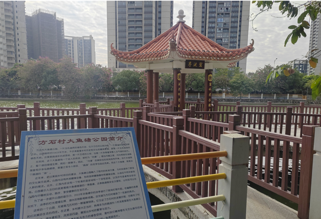 在广州市白云区人和镇方石村村口,有一个面积超1万平方米的大池塘,因为漏水,此前废弃多年。记者日前获悉,在白云区、人和镇、方石村的共同努力下,目前该池塘已重获新生,被打造成了集健身、休闲、娱乐等于一体的综合性公园。这是该村今年建成的第二个公园,不仅提升了环境品质,也增强了村民的幸福感。