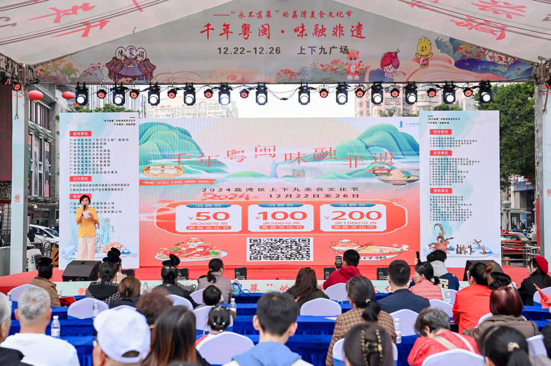 本次美食文化节由广州市荔湾区振兴西关美食工作组织委员会、三明市沙县区小吃产业发展管理委员会共同主办,旨在深入挖掘消费潜力,激活上下九步行街消费活力,同时也是荔湾区擦亮“食在广州,味在西关”金字招牌系列举措之一。荔湾区市场监管局党组成员、总工程师刘海洋表示,与传统美食节不同,这次是粤、闽两省,广州、三明两市,荔湾、沙县两区首次开展的美食联动活动,力争给广大市民游客奉上一场最真诚、最本土、最难忘的美食盛宴。