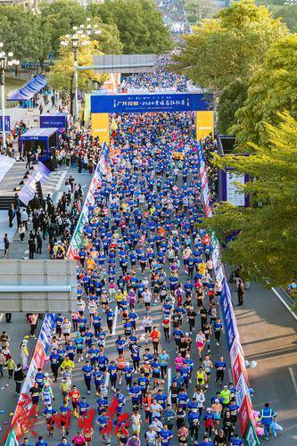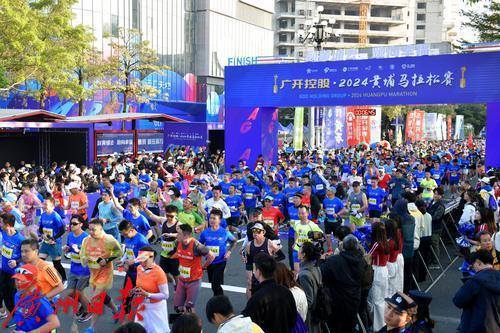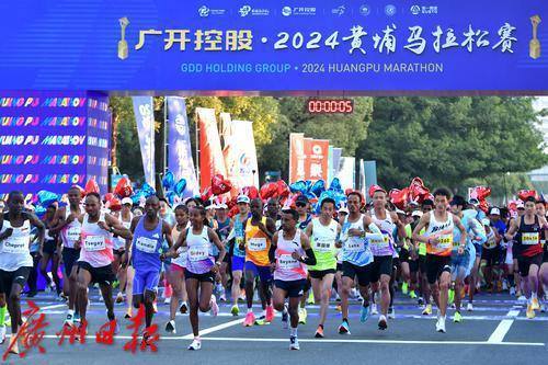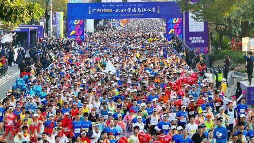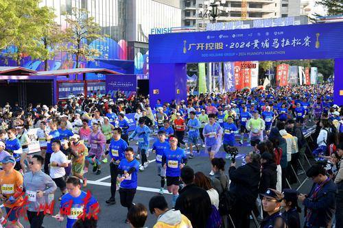2024黄埔马拉松赛正式鸣枪开跑。