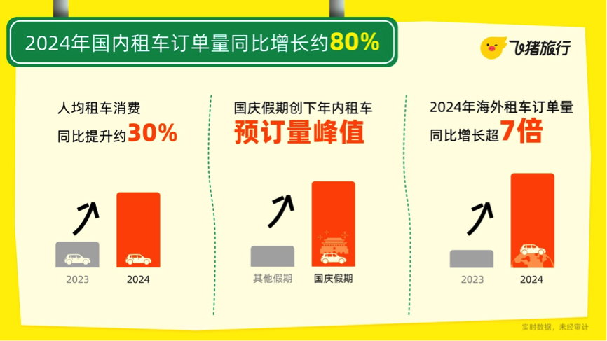 年轻化的人群结构正在影响租车消费习惯。飞猪数据显示,年轻人偏爱快速决策、说走就走的旅行,2024年国内租车预订的平均提前天数较去年缩短0.7天,海外租车预订的平均提前天数较去年缩短3.6天。