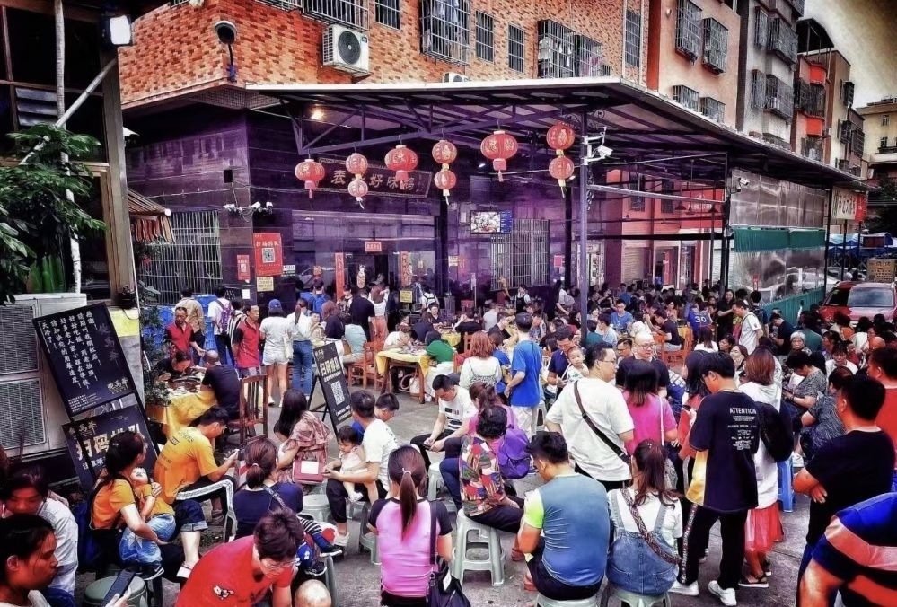 当天虽是工作日,但该店午市时间却座无虚席,食客正围坐在一炉炉热气腾腾的鸡煲前,有说有笑地分享着美味。