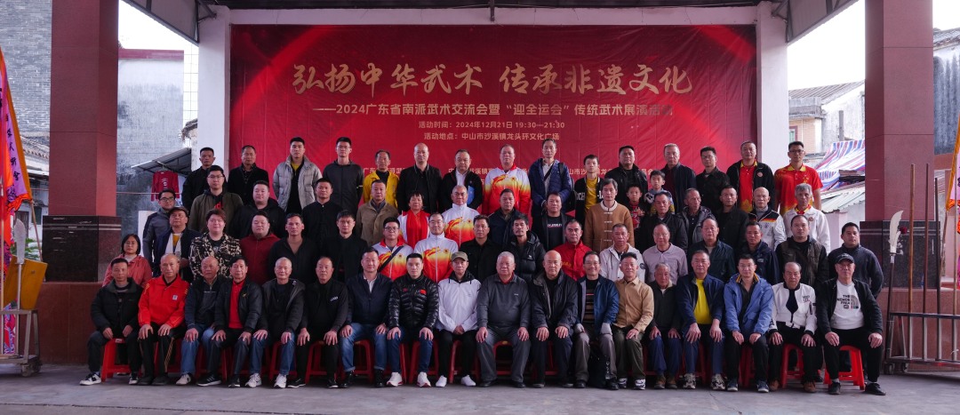 12月21日晚,恰逢冬至节气,中山市沙溪镇龙头环村文化广场张灯结彩。100多位来自广州、佛山、东莞、惠州、肇庆、江门以及香港的武林同道与当地的传统武术项目传承人欢聚一堂,参加“2024年广东省南派武术交流会暨‘迎全运会’传统武术展演”。