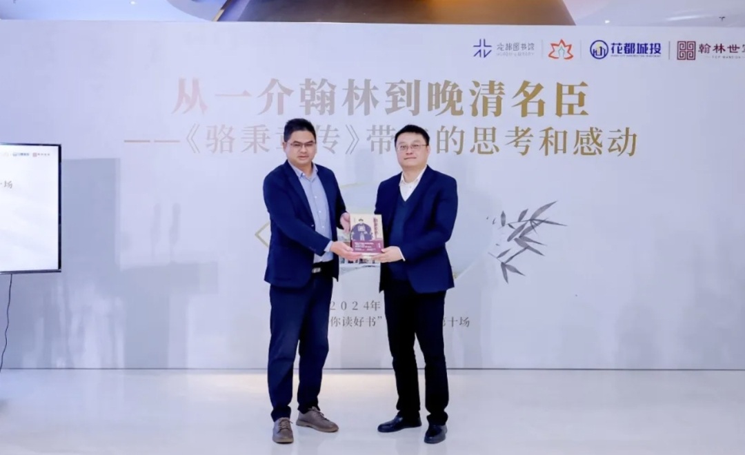 活动一开始,该项目营销负责人巩巍表示,翰林世家一直致力于打造新中式文化府邸“体验馆”,而晚清名臣骆秉章的故事在花都传颂不衰,此次在这里举办《骆秉章传》读书分享会,是翰林世家文化构建的一个新尝试,他希望借此机会,与花都文化界广泛合作,深入交流,共同为花都的全民阅读和文化发展注入了新的活力。随后,骆秉章研究会副会长任锦辉向翰林世家赠送了《骆秉章传》。