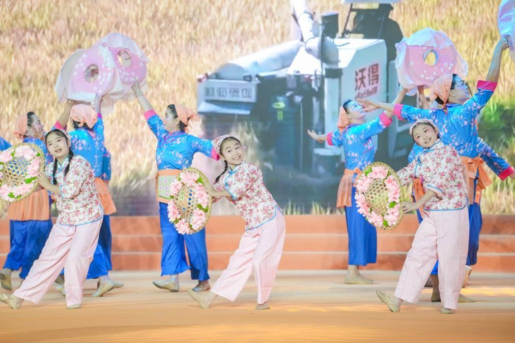 “村韵风华”则由石厦村、沙尾村、新洲村、下沙村、皇岗村联袂上演:舞蹈《华夏》与乐队情景剧《祝福》,诠释着围村人民的包容互助与浓浓真情。新洲村的《春三月》、下沙村的《丰收》、皇岗村的《舞动锦绣》,以优美的舞姿描绘出一幅人与自然和谐共生的美好画卷,展望着围村文化的传承与延续。