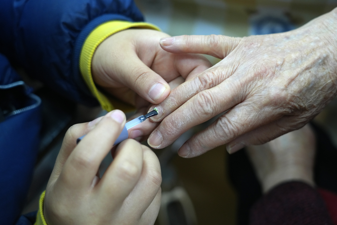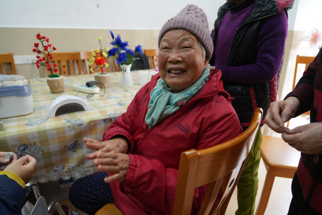 “我今年80多岁了,还是第一次做美甲,以前看过别人做,没想到自己也有机会!”刘婆婆看着刚刚做好的指甲,笑得合不拢嘴。“我们年轻的时候都不会打扮自己,衣服都是黑白灰三种颜色,年纪大了就更潦草了,没想到80多岁还有机会重新精致!”刘婆婆说。