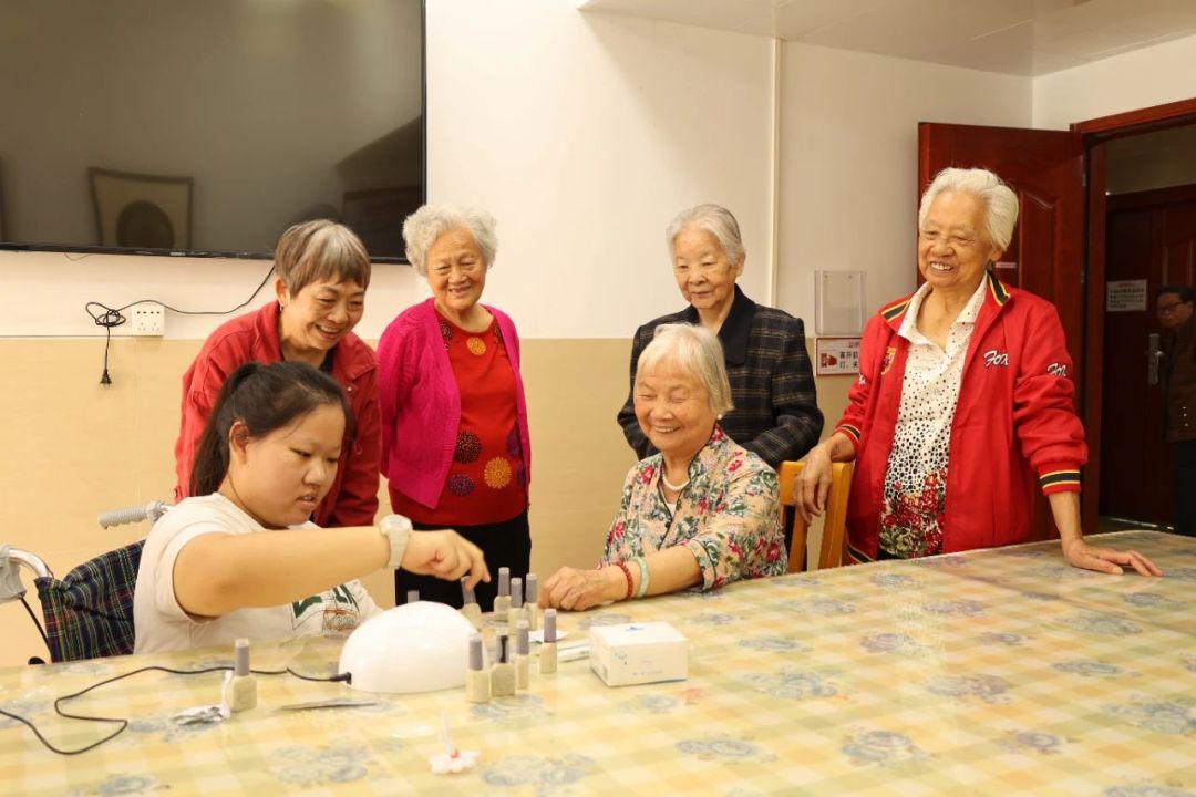 看到长者们露出欢乐的笑容,听到她们发自内心的称赞,莹莹无比感动,成就感涌上心头,从此,她就经常到桃苑福利中心为“老友记”们提供美甲服务。在为长者美甲的过程中,她耐心细致地询问她们的喜好,精心挑选色彩斑斓的美甲贴片,小心翼翼地为她们修剪指甲,绘制图案,为中心内长者的康复生活增添了欢乐和色彩。
