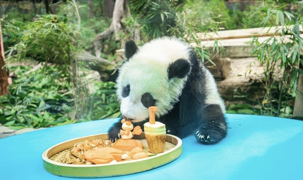 目前,长隆生活着华南地区最大的大熊猫迁地保育种群,共有16只大熊猫,包括全球唯一的大熊猫三胞胎、华南地区首个大熊猫“子一代”和“子二代”。长隆创建了由国家林业和草原局批准建设的中国大熊猫研究中心广东基地,自主研发了10余种大熊猫专用食谱,不断地寻找和开发大熊猫喜欢吃的竹子品种。