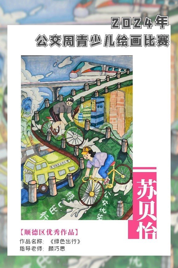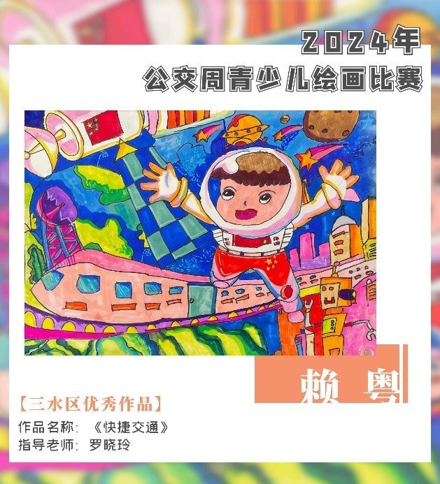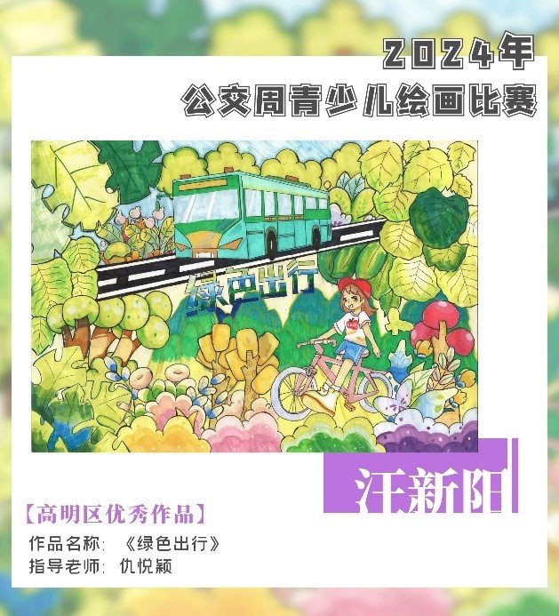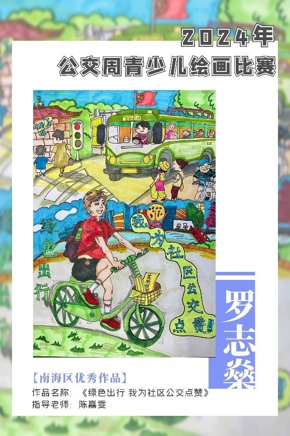 据介绍,佛山2024年公交周青少儿绘画比赛,是由佛山市、区交通运输局指导,佛山市公共交通管理有限公司联合全市中小学校共同举办。本次比赛以“绿色出行 公交优先”为主题。各区学生们充分发挥丰富的想象力,通过独特的视角、绚丽的色彩、灵动的画面,描绘出他们对于绿色低碳出行的理解和感受,也生动地呈现出佛山推进城市公共交通优先发展的成果经验。
