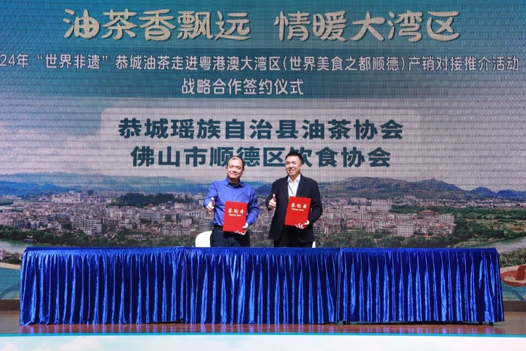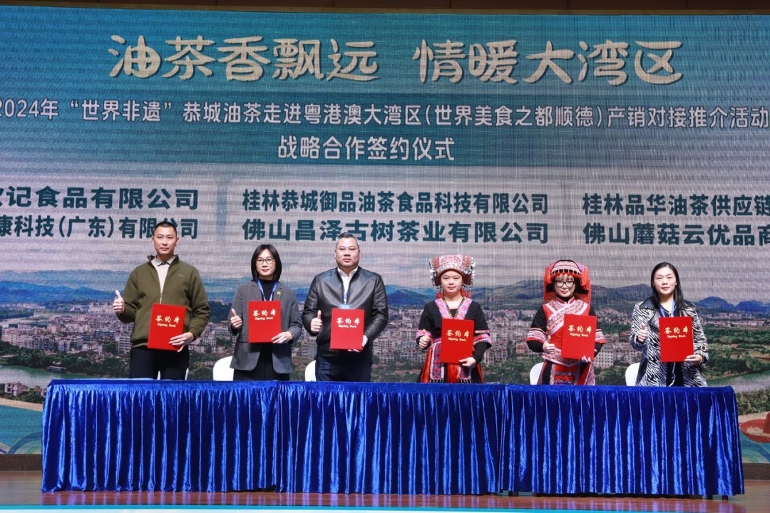 12月23日,由顺德区餐饮协会承办的2024年“世界非遗”恭城油茶走进粤港澳大湾区(世界美食之都顺德)产销对接推介活动,在顺德大良举办。活动旨在进一步促进恭城与佛山两地美食文化交流,推广恭城油茶品牌,激发餐饮消费潜能,推动桂林和广东饮食交流融合、产销对接、文化互动。