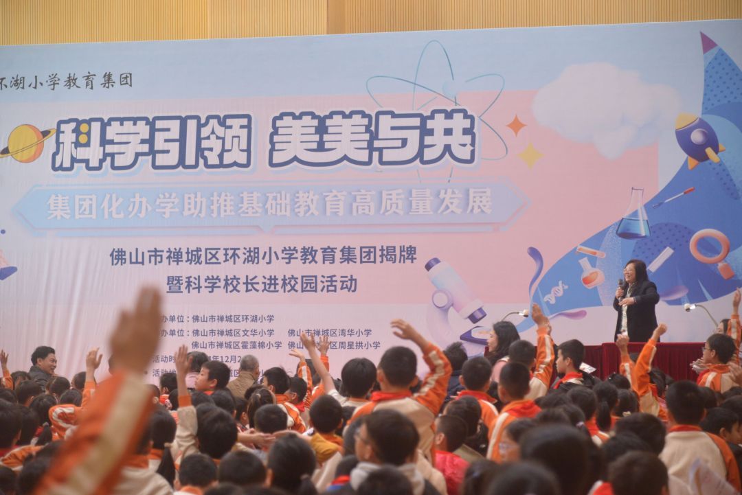 站在新的起点上,新阶段集团化办学将更好地促进优质教育资源的整合和共享。以当日的“科学校长进校园”活动为例,目前环湖小学教育集团只有核心校环湖小学设有科学校长,为了共享科学教育优质课程,当日的活动特别邀请了教育集团各校长师生代表齐聚环湖小学本部,同时以直播等形式与集团校全体师生分享。在这场以“全球变暖”为主题的专题讲座中,环湖小学科学校长刘宏博士指引孩子们学习科学素养的本质,让孩子们思考如何应对气候变化并做出努力。