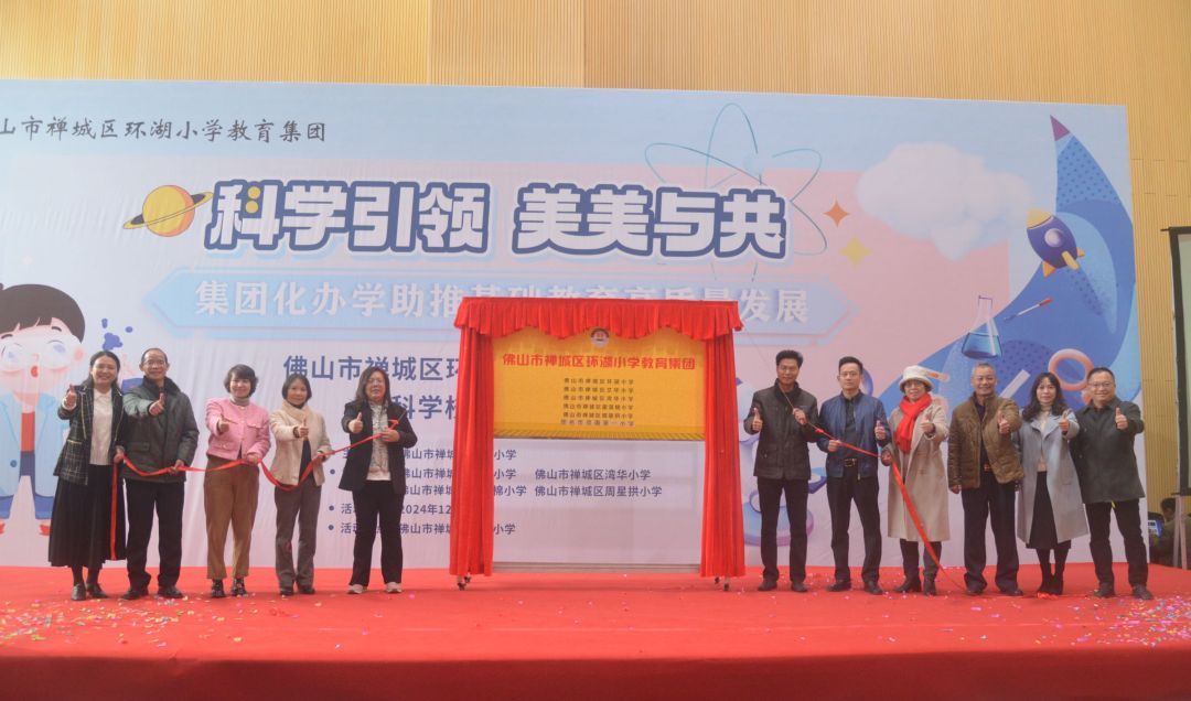 12月24日,佛山市禅城区环湖小学教育集团揭牌,正式迈入了集团化办学的新历程。广州日报记者了解到,新的环湖小学教育集团发展至两地六校,以环湖小学为核心校,成员校包括文华小学、湾华小学、霍藻棉小学、周星拱小学、茂名市茂南第一小学,覆盖8697名学生,未来将以集团化办学充分发挥区域教育资源共建共享,加快教育优质均衡发展。