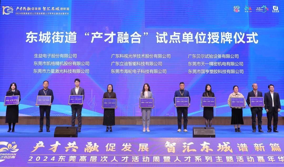 活动分为“产才融合”“赋能人才”两部分。在“产才融合”部分,东莞市产才融合服务中心围绕“市场化运作深化产才融合”主题,对服务中心推动产业与人才的深度融合进行宣讲推介。同时,现场为生益电子股份有限公司、东莞市凯格精机股份有限公司、东莞市力星激光科技有限公司、广东科视光学技术股份有限公司、广东立迪智能科技有限公司、东莞市海轮电子科技有限公司、广东贝尔试验设备有限公司、东莞市天一精密机电有限公司、东莞市国亨塑胶科技有限公司等街道“产才融合”试点单位进行授牌。