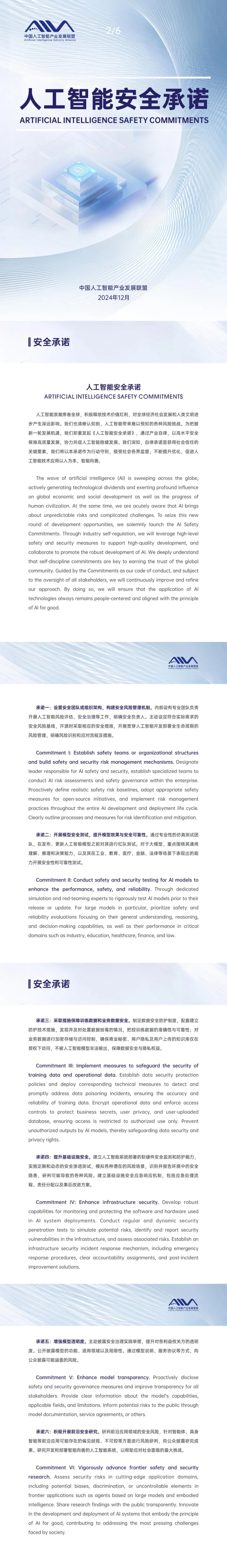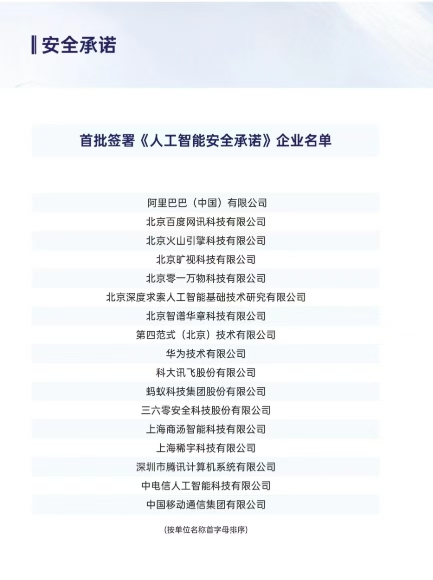 人工智能释放技术价值红利的同时带来复杂风险挑战,如何平衡发展与安全已成为牵动人类命运共同体的重大课题。为把握机遇,应对挑战,中国人工智能产业发展联盟积极践行《全球人工智能治理倡议》,凝聚政产学研用各方智慧,起草发布《人工智能安全承诺》(以下简称“《承诺》”),旨在推动行业自律,建立高效协同的治理机制,协力共促人工智能应用以人为本,智能向善。