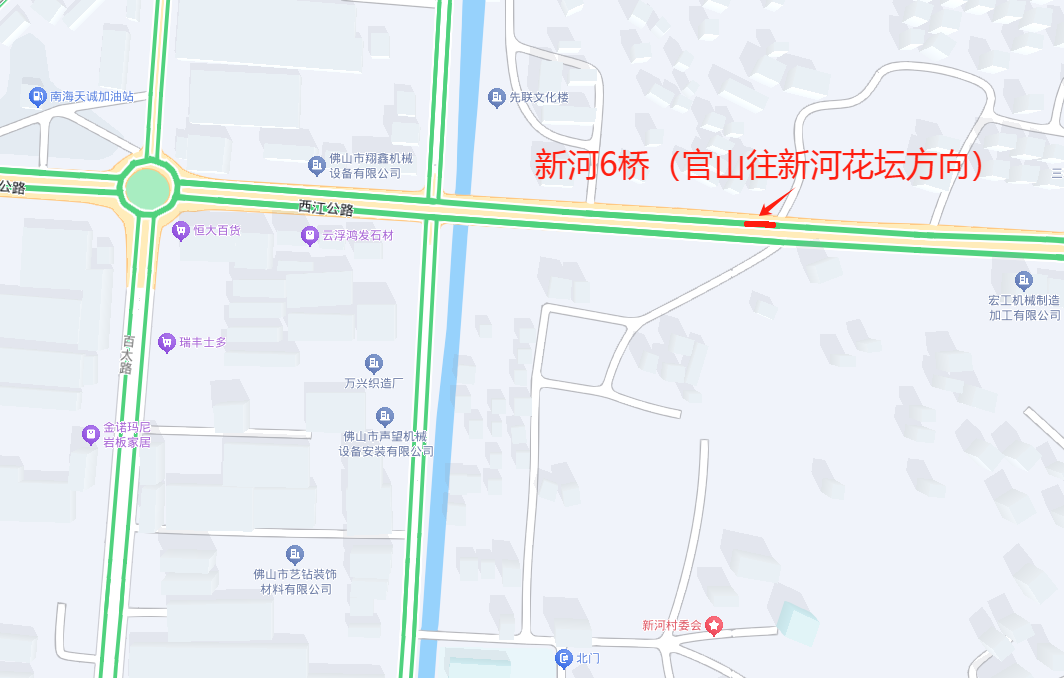 据佛山南海公安通报,2024年12月25日起,西樵镇西江公路新河6桥(官山往新河花坛方向)将进行拆除重建。2024年12月25日至2025年1月25日,新河一甲村村口至新河花坛路段单方向实行全封闭施工,请过往车辆按照现场交通标志指示绕道行驶。