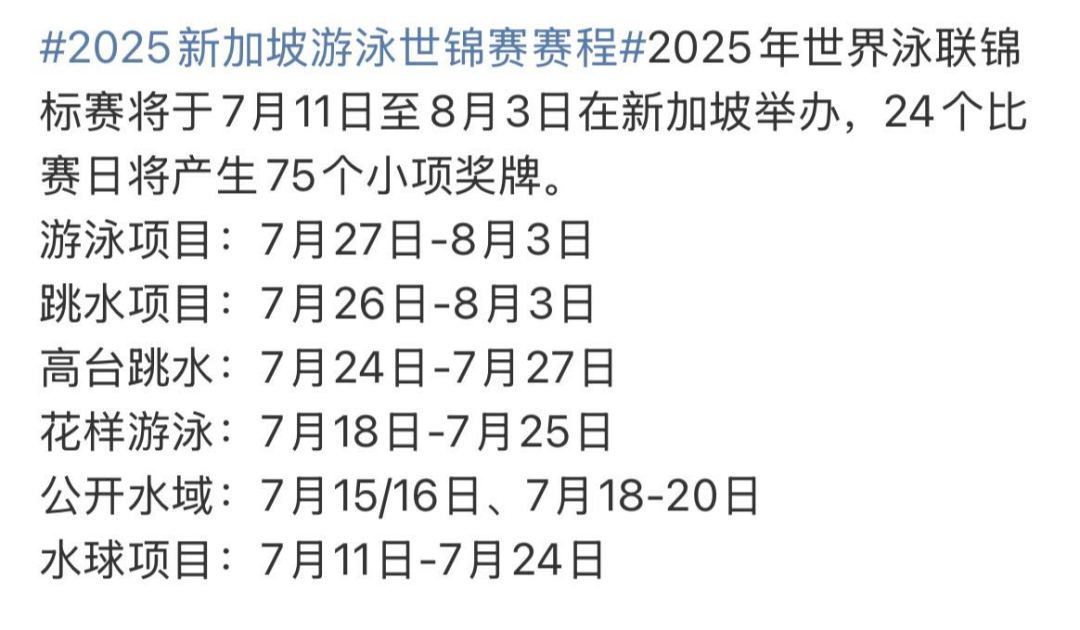 事实上,中国国家跳水队在今年2月已经参加了世界泳联多哈游泳世锦赛,要到明年7月才会参加世界泳联新加坡游泳世锦赛。记者了解到,目前中国跳水队正在冬训中,2025年主要的大赛是跳水世界杯(一般3月—5月举行)和7月的新加坡游泳世锦赛,以及11月在粤港澳三地举行的全运会。