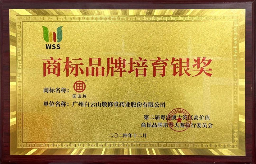 日前,第二届粤港澳大湾区高价值商标品牌培育大赛(以下简称“湾商赛”)颁奖典礼举行。经过角逐、评审,广药集团旗下广州白云山敬修堂药业股份有限公司(以下简称“白云山敬修堂”)的园田牌商标荣获“商标品牌培育银奖”,广州白云山和记黄埔中药有限公司(以下简称“白云山和黄”)的GAP牌商标、广州白云山中一药业有限公司(以下简称“白云山中一”)的中一牌商标分别获评“商标品牌培育百强”奖。