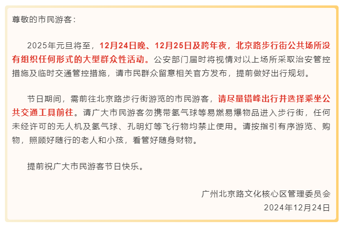 北京路核心区管委会重要提醒:北京路没有大型群众性活动!