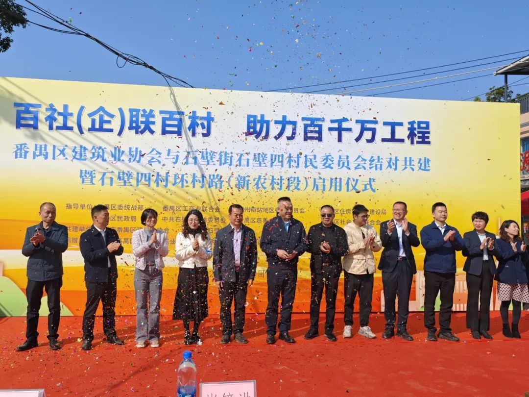 12月19日上午,番禺区建筑业协会与石壁街石壁四村民委员结对共建暨石壁四村环村路启用仪式举行。番禺区政府有关部门、石壁街党工委、番禺区建筑业协会、新业建设股份有限公司以及石壁四村党总支的领导和代表们共同参加。