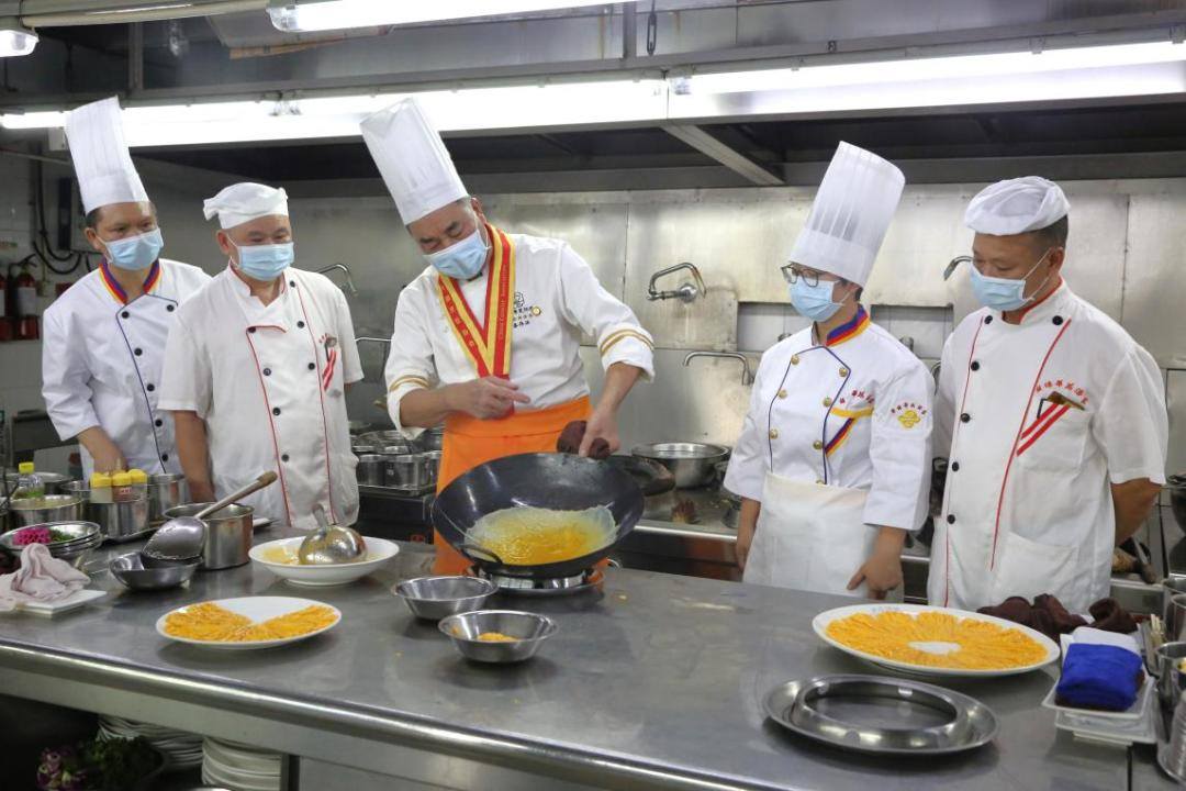 黄埔蛋制作技艺项目中,师傅现场示范摊制蛋皮的关键技术。