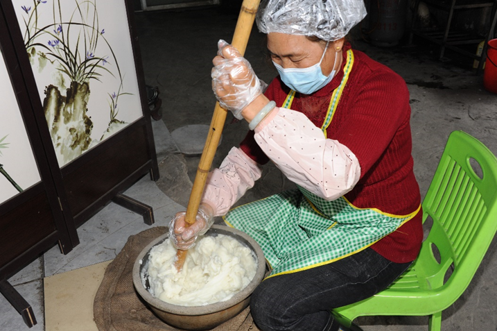 疍家糕制作技艺的“撑粉”工序。