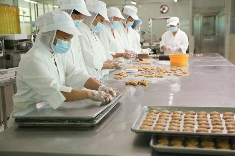小凤饼(鸡仔饼)制作技艺中的手工制作环节。