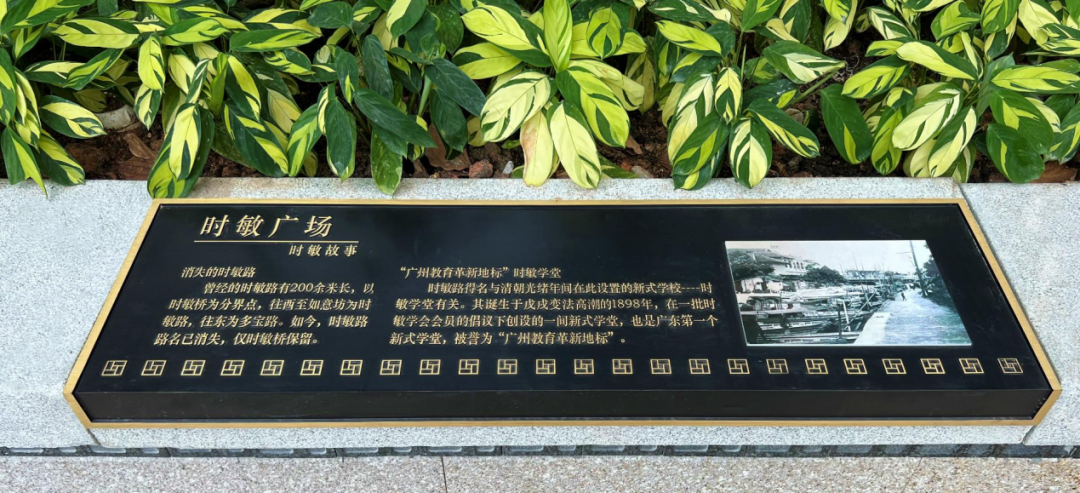此外,时敏桥红砂岩老桥座作为岭南水乡历史的珍贵见证,现已重新焕发生机。桥下空间对公众开放,历史悠久的红岩砖得以完整保留,充分展示了岭南独特的建筑魅力。同时,“时敏桥”“柔济桥”等老地名也得以复原,为这片区域注入浓厚的历史韵味。桥座旁新设的文化介绍牌,以简洁生动的文字讲述桥梁的历史与背景。这些改造不仅保留了历史的厚重感,通过文化景观的复兴,更赋予其鲜活的生命力,让历史与现代在街区保护提升中相得益彰。
