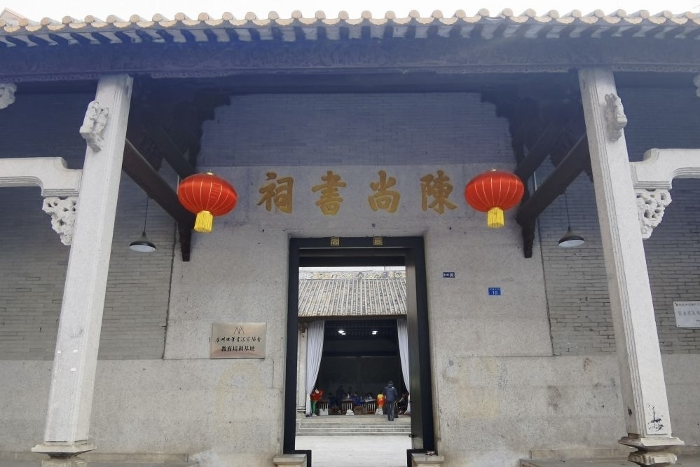 旧水坑村距今已有700多年历史,始祖为宋朝陈顕公,官达户部尚书,后人为纪念陈尚书以建陈尚书祠。该祠堂始建于清朝,坐东北、向西南,两间两进,2011年1月被列为番禺区登记保护文物单位。今年年初,针对陈尚书祠年久失修、破损严重的情况,该村启动修缮工程,秉承“修旧如旧”原则,最大限度地保留了原有建筑肌理。