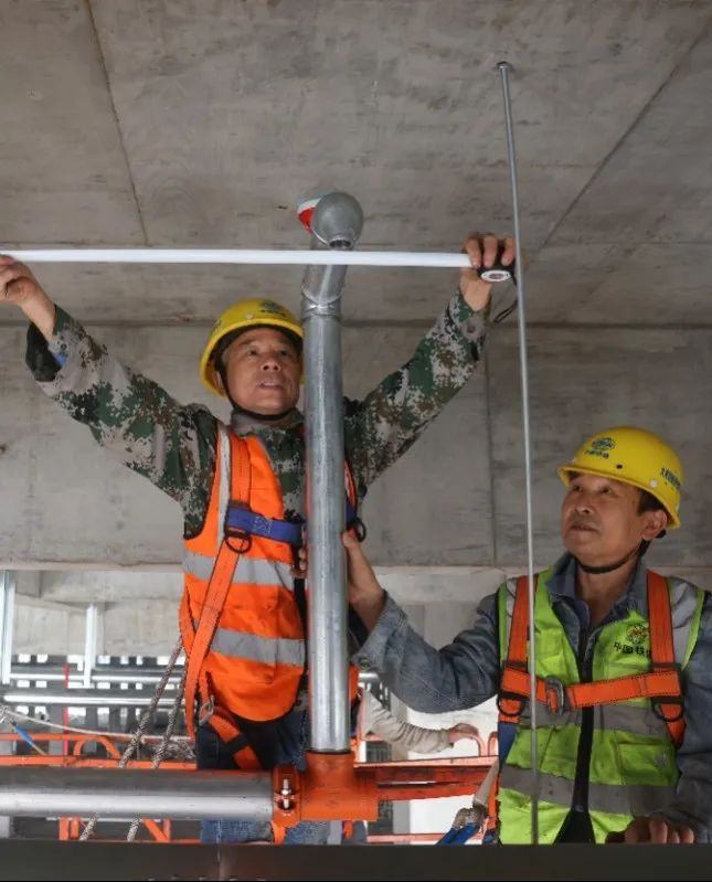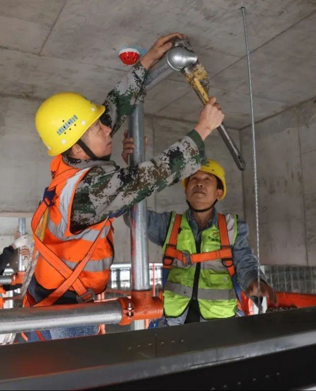 △施工人员开展消防喷淋管安装作业