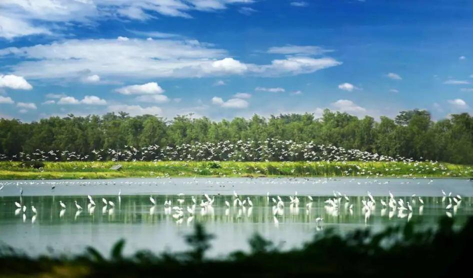 南沙湿地位于东亚—澳大利西亚候鸟迁飞路线的中段,是珠江口一处少有的大面积非养殖性质水体的人工湿地,其独特的地理环境孕育了丰富的生物多样性,形成相对稳定的生态系统。湿地内保持着1000亩以上的低水位滩涂区域,为众多候鸟提供了理想的栖息和觅食环境。