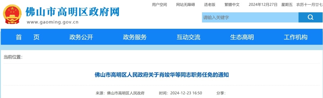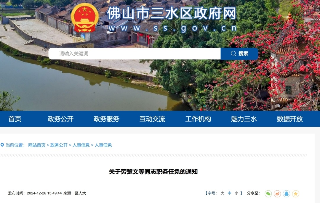 日前,佛山市高明区政府官网和三水区政府官网发布了最新的人事任免通知。