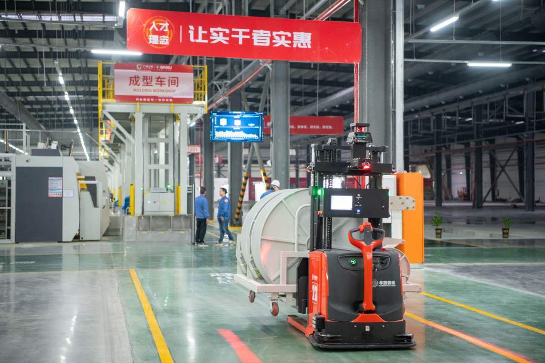 值得注意的是,三期项目将打造成为国内一流的自动化、信息化、数字化智能高效轮胎制造示范工厂。记者在工厂内看到,AGV小车代替了原先的人工运输物料,硫化车间胎胚实现了自动化运输、精准“空投”;条码系统的建立实现了生产全流程的信息溯源。