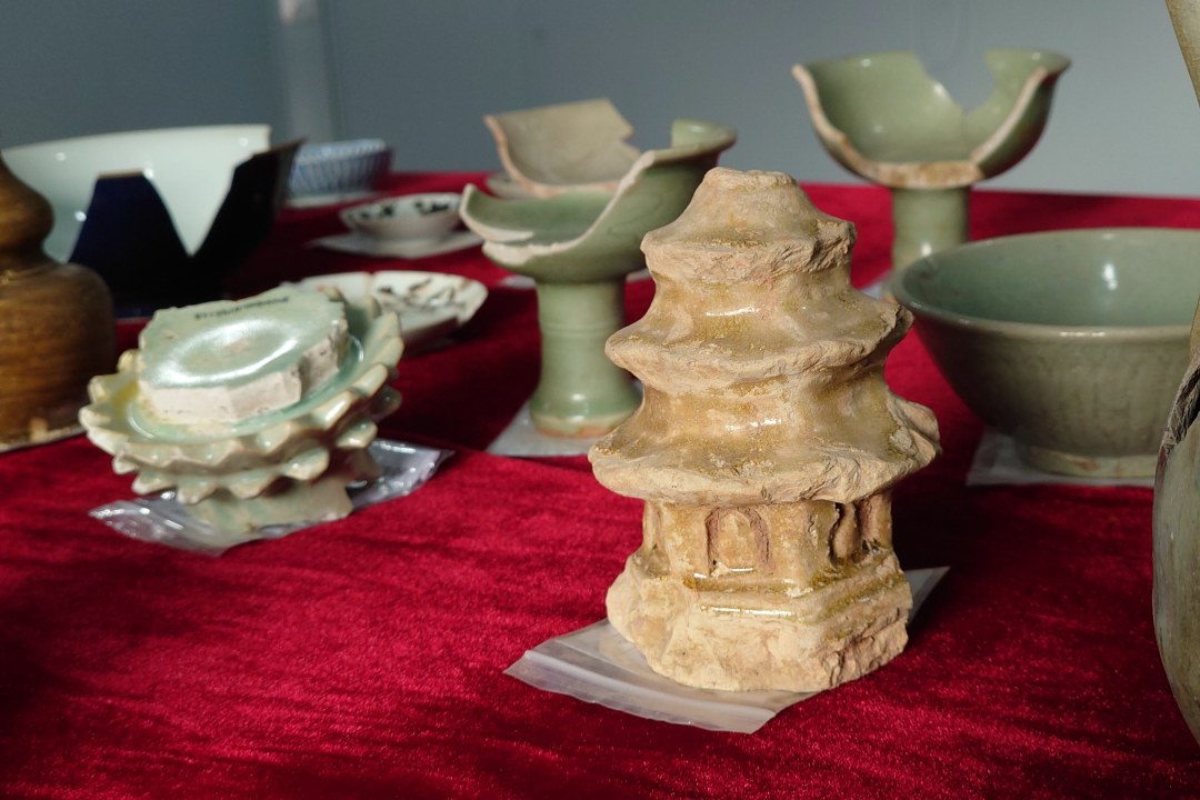 广州市文物考古研究院调查勘探部主任、小马站-流水井古城遗址考古发掘项目负责人程浩副研究馆员现场讲解出土文物。