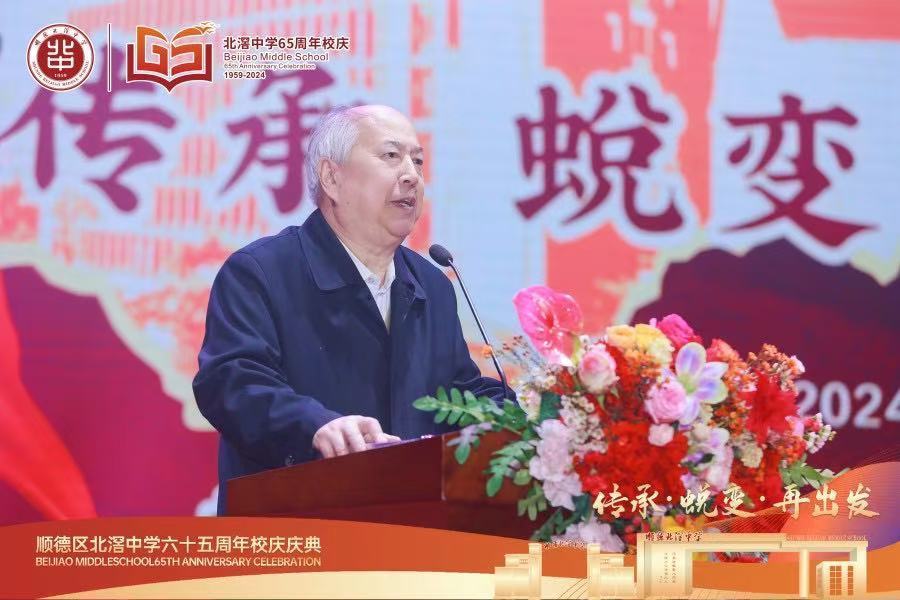 顺德区教育局副局长刘进华表示,当前,北滘中学作为顺德教育的一张靓丽名片,65年来,始终坚守教育初心,践行立德树人使命,培养了一大批优秀人才,为顺德的经济社会发展做出了重要贡献。近年来,学校更是在教育教学改革、人才培养、师资队伍建设等方面取得了显著成绩,2024年高考成绩辉煌闪耀,令人瞩目。“尤其是今年开办钱学森实验班、引入成都七中双师课堂,更是彰显了北滘中学在教育创新方面的勇气和担当。”他表示,顺德区教育局将继续为北滘中学的发展创造更多有利条件,希望学校创新教育模式,提高教育质量,努力培养更多德智体美劳全面发展优秀学生。