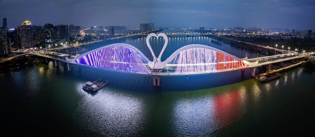 12月28日,惠州鹅城大桥正式通车。这是中铁广州工程局继广州海心桥、南沙聚星桥等精品桥梁之后,承建的又一桥梁建设艺术品。尽管此前还未通车,鹅城大桥依然早已成为惠州市民的最新网红打卡点。有网友称之为“广东的施华洛世奇”“最浪漫的大桥”。昨晚,鹅城大桥首度进行灯光调试,绚烂的灯光秀通过激光动画的方式,展现惠州本地文化特色以及苏东坡文化,节假日还将展现特色节日文化。