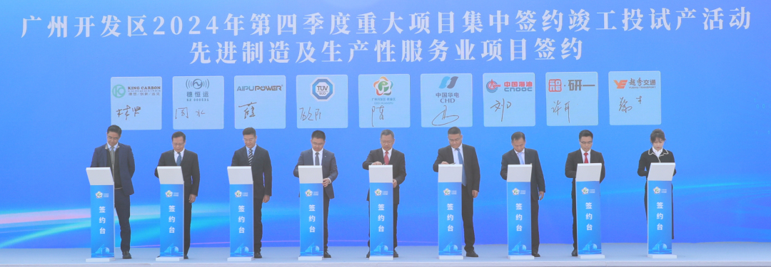 除120个竣工投试产项目外,本次活动上40个签约项目也堪称“重量级”,项目总投资额约509亿元,预计达产产值约630亿元。既有世界500强企业投资的广汽飞行汽车项目、华电集团南方总部项目,也有德国排名第一、单一检测认证营收世界排名前三的TÜV南德意志集团大湾区运营中心项目等,全球优质产业资源正持续加速向广州开发区集聚。