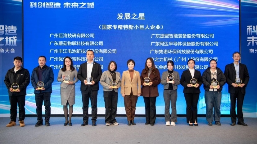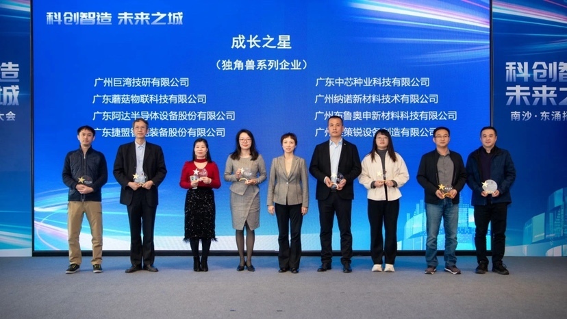颁奖仪式上,广州巨湾技研有限公司、广东中芯种业科技有限公司等8家独角兽系列企业获颁“成长之星”称号,另有广东捷盟智能装备股份有限公司、广东阿达半导体设备股份有限公司等一批专精特新企业分别获得“发展之星”“科创之星”称号。南沙区工信局局长李淑臻表示将与东涌镇一起继续加大专精特新中小企业培育,帮助企业拓展市场。