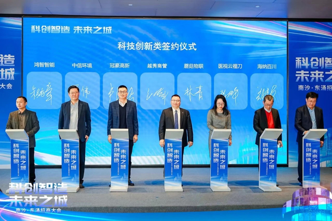 科技创新项目类签约环节,越秀集团与冠豪高新技术、蘑菇物联科技、中信环境技术、医视云禤刀信息技术、鸿智智能科技、海纳百川环保科技项目签约代表签约。越秀集团发挥市属大型国企优势,立足招商前沿阵地,聚焦创新型企业精准招商,目前已吸引近200家高成长性企业进驻东涌。