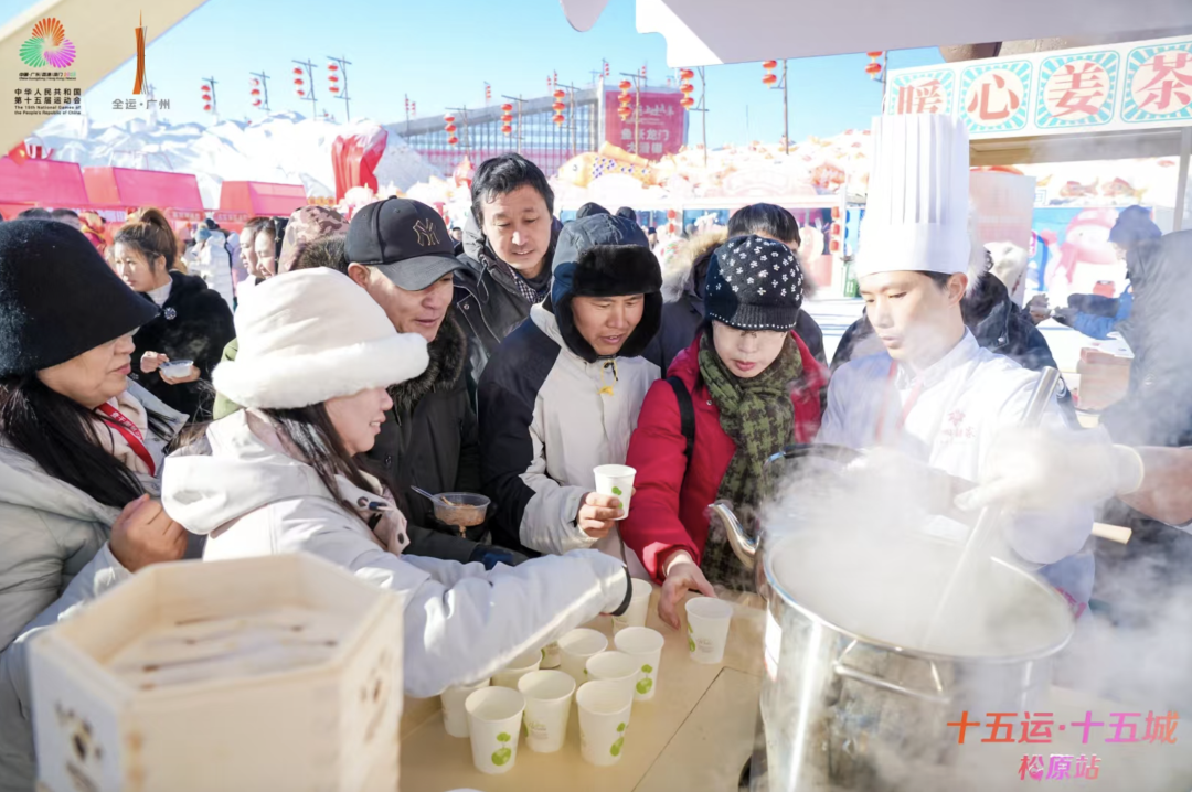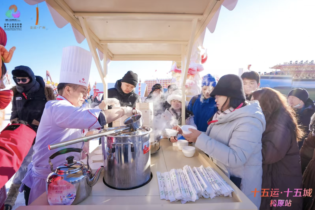为做好全运会和广州城市的传播工作,十五运会和残特奥会广州赛区执委会正在全国开展“十五运·十五城”系列活动。12月27日,“十五运·十五城”第二站在吉林省长春市举行。今天,第三站来到松原市查干湖。广州赛区执委会在统筹策划“十五运·十五城”系列活动中围绕长春站和松原站大胆创新,充分展示两地文化的亮点,“广州早茶遇上东北早市——广州美食交流展示活动” “广州砂糖桔、迟菜心和查干湖胖头鱼的双向奔赴”,充分体现了两地市民群众的美好祝福。