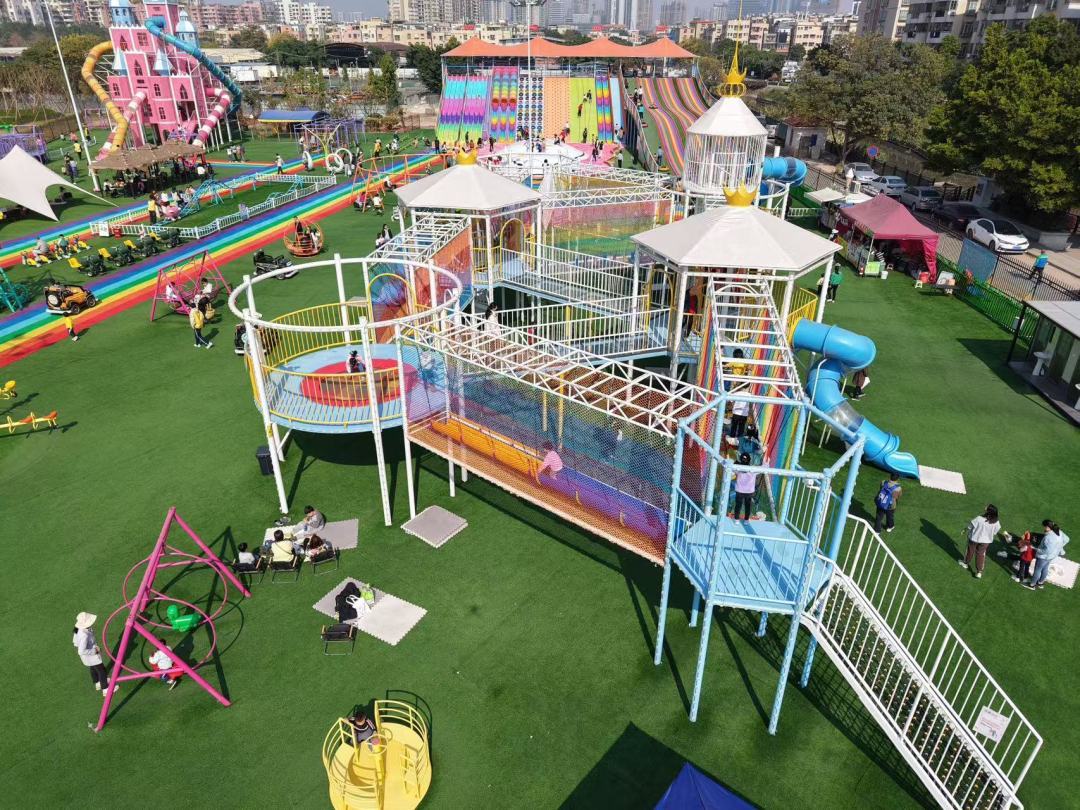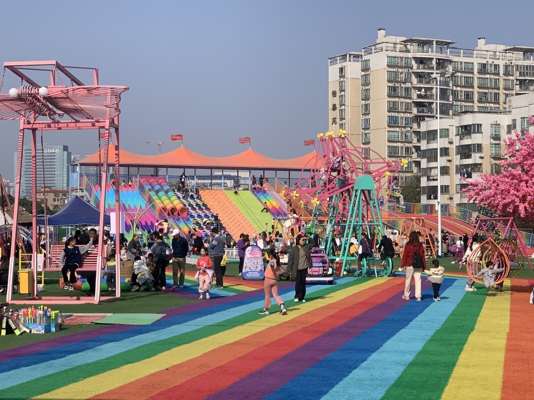 公园里还设有童话亲子乐园。记者看到,亲子乐园占地约7000平方米,配备无动力游乐设施如彩虹滑梯、童话城堡等项目,为孩子们打造梦幻的游乐天地。记者现场看到,亲子乐园的项目数量多达24个。