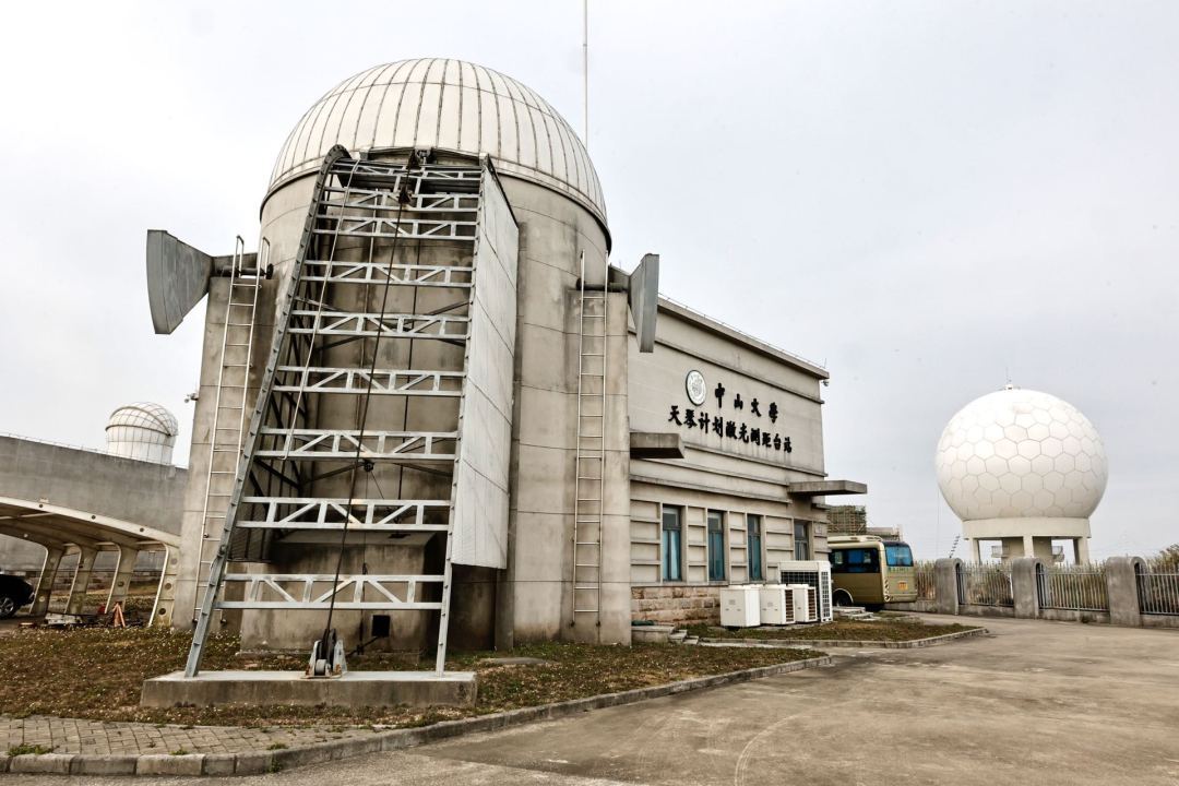 在珠海校区背后的凤凰山顶,矗立着中山大学天琴测距台站。“天琴计划”是罗俊院士于2014年提出的空间引力波探测计划,预期于2035年前后在约10万公里高的地球轨道上,部署三颗全同卫星构成边长约17万公里的等边三角形星座,建成空间引力波天文台。中山大学珠海校区迈向“深空”的探索步伐愈发坚定。