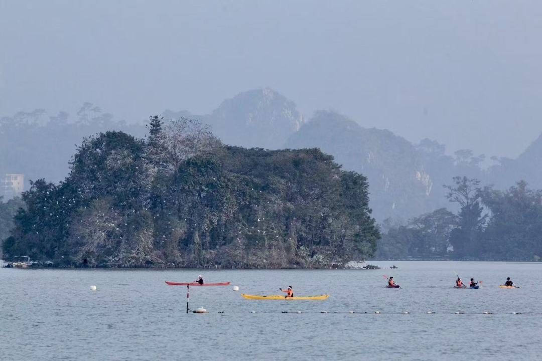体验组中有不少学生团队。来自广州应用科技学院的林俊奇是计算机专业的学生,他玩桨板两年了,这次专程报名来体验一下皮划艇项目,觉得这种“肥仔艇”不同于专业皮划艇,门槛很低,他第一次划都能轻松掌握,所以它是非常适合全民参与的运动,同时在风光如画的地方举办此类项目,无论对项目还是城市本身都是非常好的宣传。