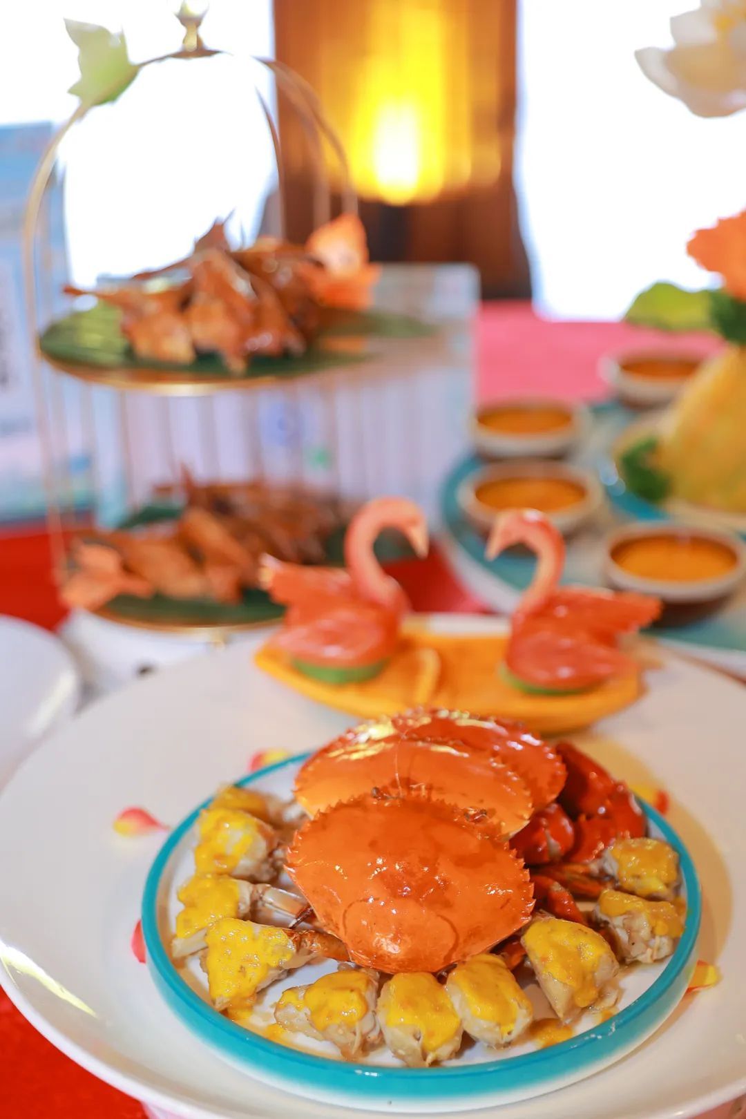 在南沙水鸟世界泰国馆内,还有十几个摊位也在现场摆摊卖货,万顷沙木瓜、新垦莲藕、百香果、一点红番薯……各种当地特产都能亲眼看到、亲手挑到,参加这场竞技大赛的市民们不仅能吃到美味疍家菜,还能将万顷沙食材带回家,同时还有咸水歌表演中可以欣赏,可谓是一场疍家文化的盛宴。