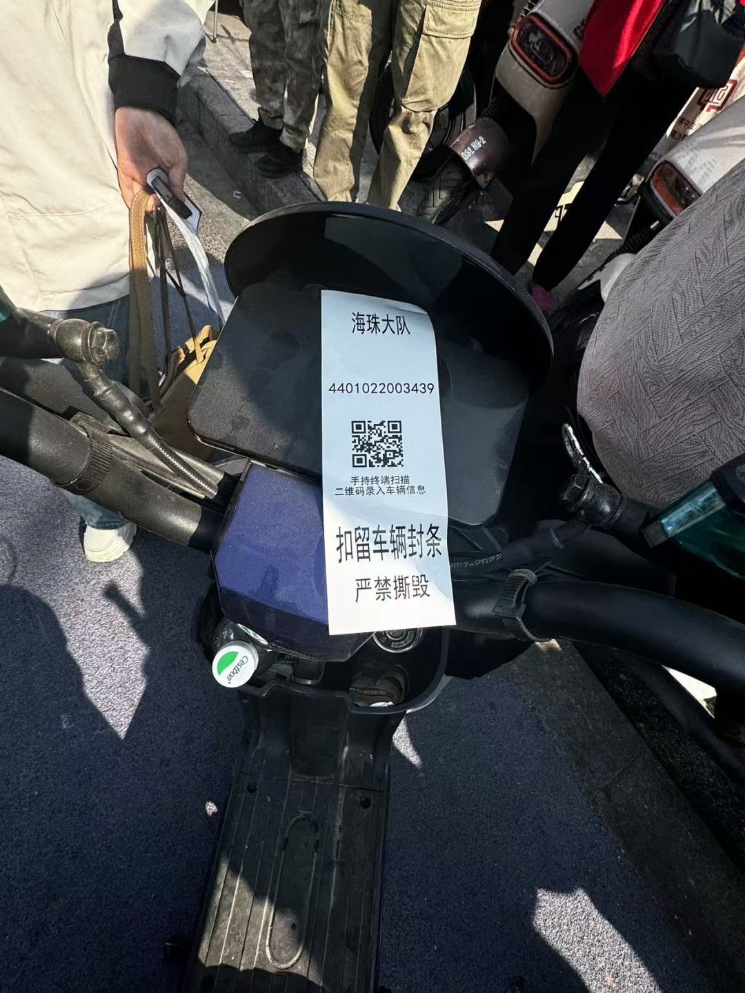 据悉,针对无牌上路行驶的交通违法行为,《广州市电动自行车管理规定》明确规定,交警部门可以扣留车辆,处警告或者五十元以上二百元以下罚款。