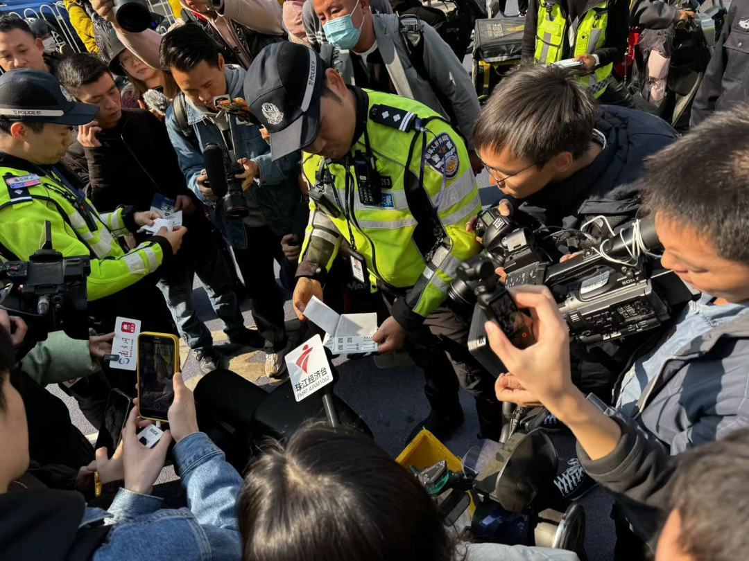 新规实施首日,路面执法情况如何?记者来到广州交警设于海珠区江南大道同福东路口的查车点直击现场。