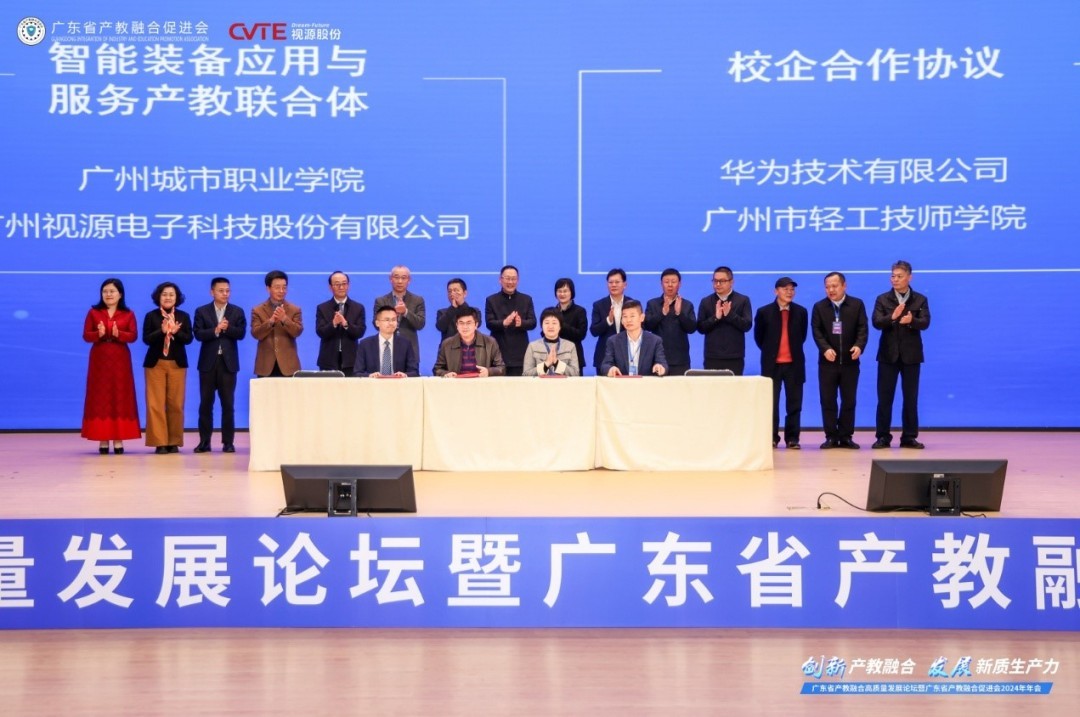 现场多家院校与企业举办了产教融合项目合作签约仪式,包括打造智能装备应用与服务产教联合体,共建广轻软件工程技术专业校外实践基地,开展信创网安人才培训平台研发及应用等。