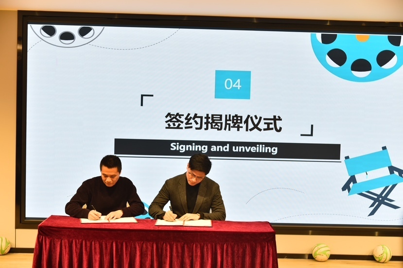 活动期间,星辉(佛山)影视产业有限公司与广州工商学院东北州立联合科技学院正式签署合作协议,共同成立“短剧电商:大学生实践教育基地”。基地的成立旨在通过校企合作模式,为学生提供更丰富的影视创作与实践机会,同时推动影视行业的人才培养。签约仪式和揭牌仪式后,双方领导和创作团队共同合影,标志着校企合作迈上了新的台阶。